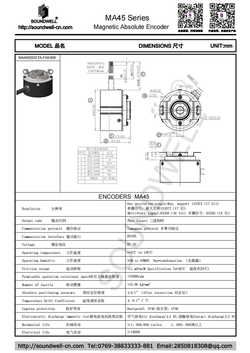 MA45單圈17B、多圈16B中空旋轉磁電絕對型編碼器